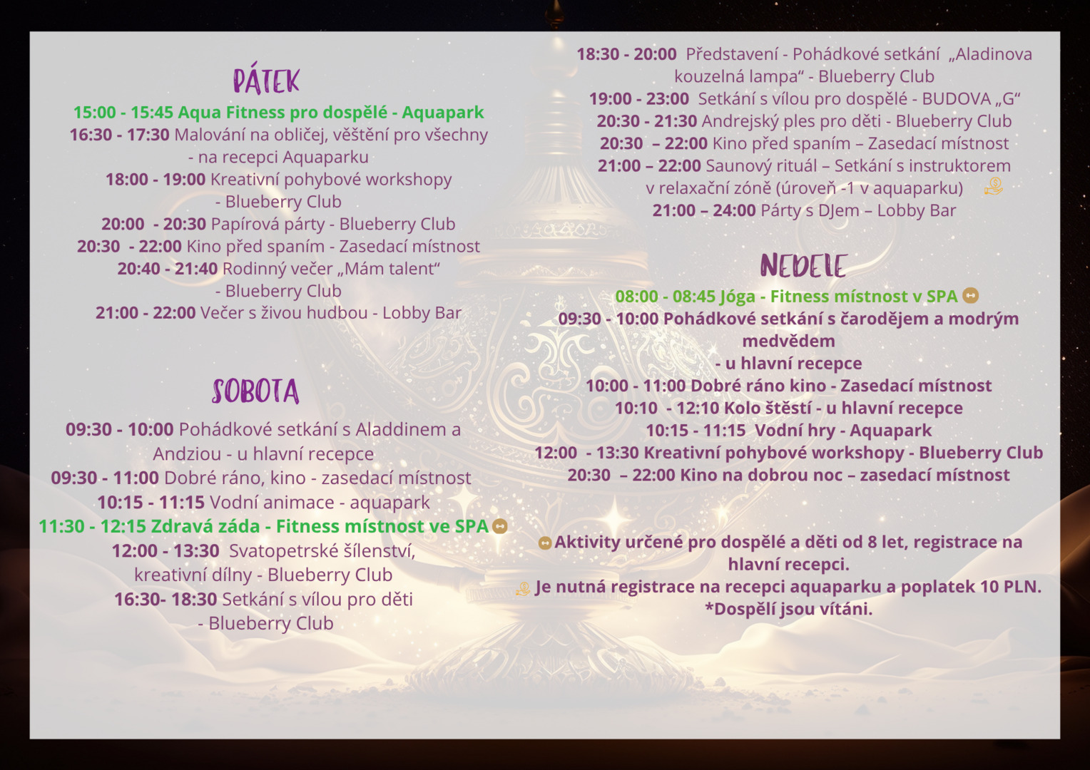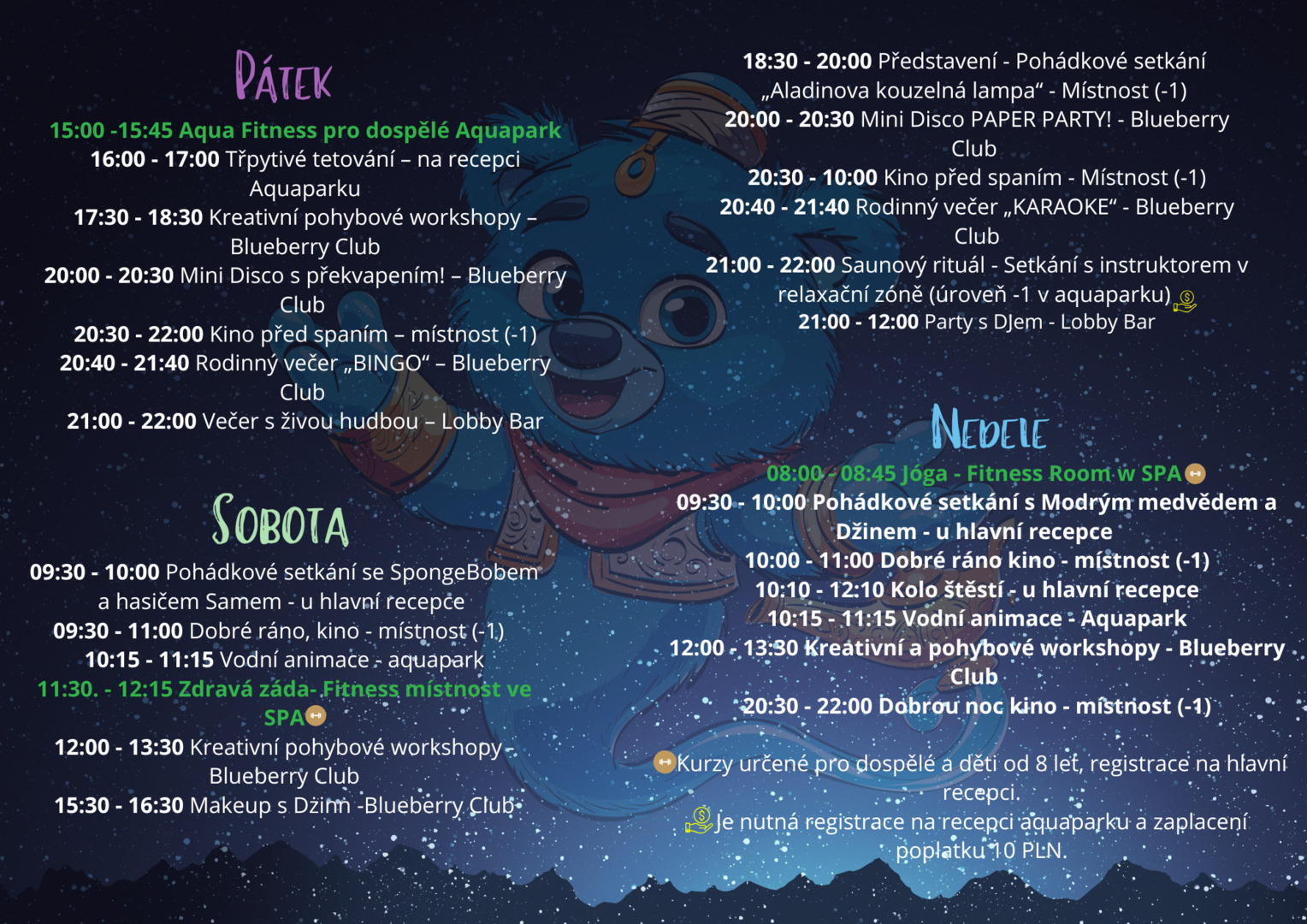 Vyhrazujeme si právo plán animací kdykoli změnit. Nejaktuálnější plán animací obdržíte přímo na místě v resortu.