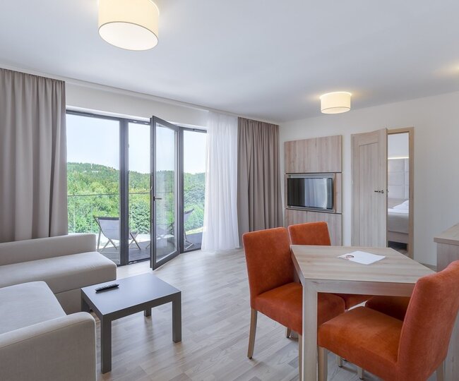 Die Außenanlage umfasst einen großen beheizten Swimmingpool, eine Familienwasserrutsche, einen Wasserfall, ein beheiztes Kinderbecken und Whirlpools im Freien. Der Innenteil besteht aus: einem großen Schwimmbad mit Multimedia-Rutsche, einem künstlichen Fluss und Geysiren. Für Kinder gibt es ein zweitiefes Becken mit Rutsche, Igeln und einem Pilz. Der Wasserkomplex wird durch eine Entspannungszone ergänzt, die ein Ort für Menschen ist, die Ruhe und Entspannung suchen.