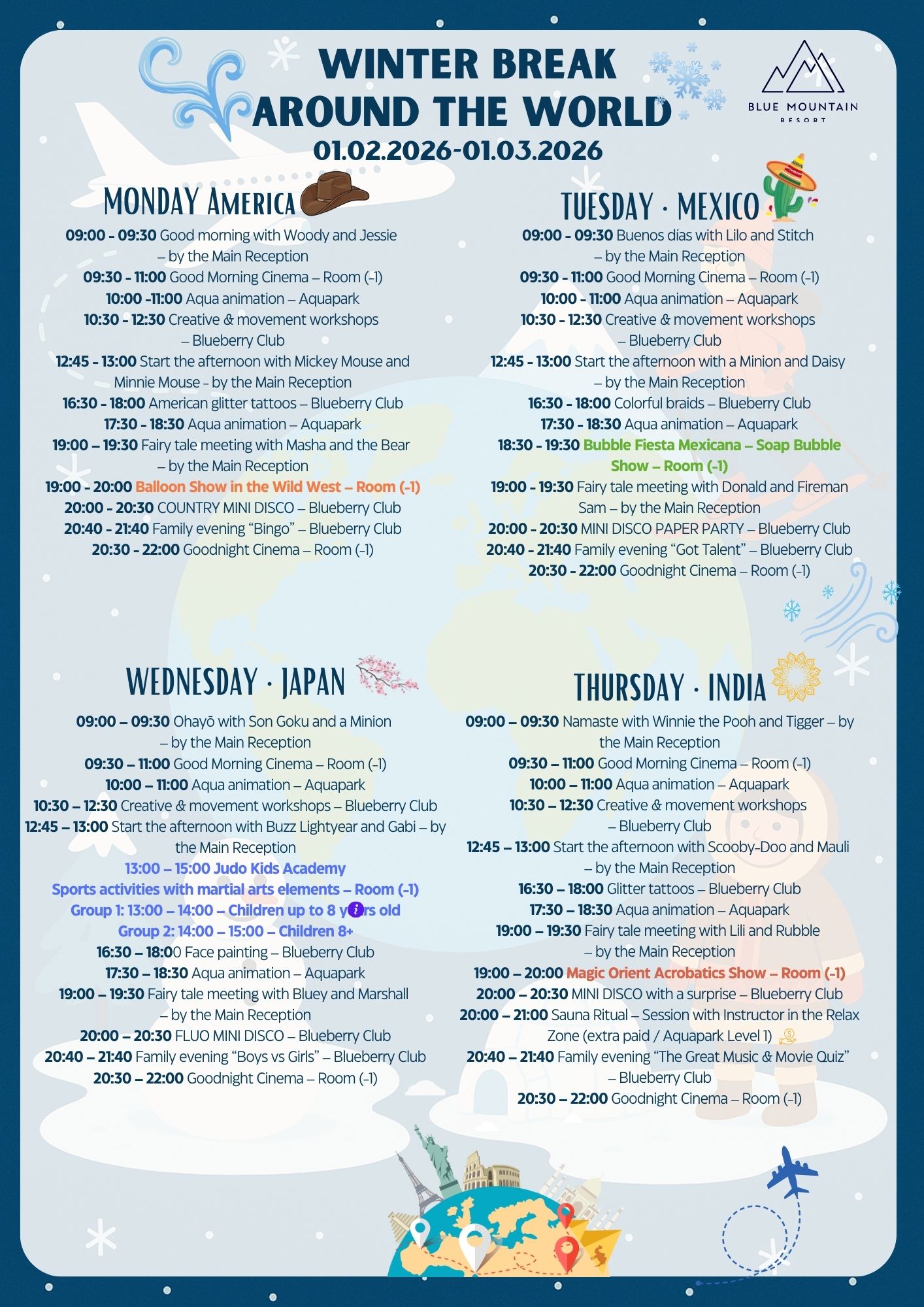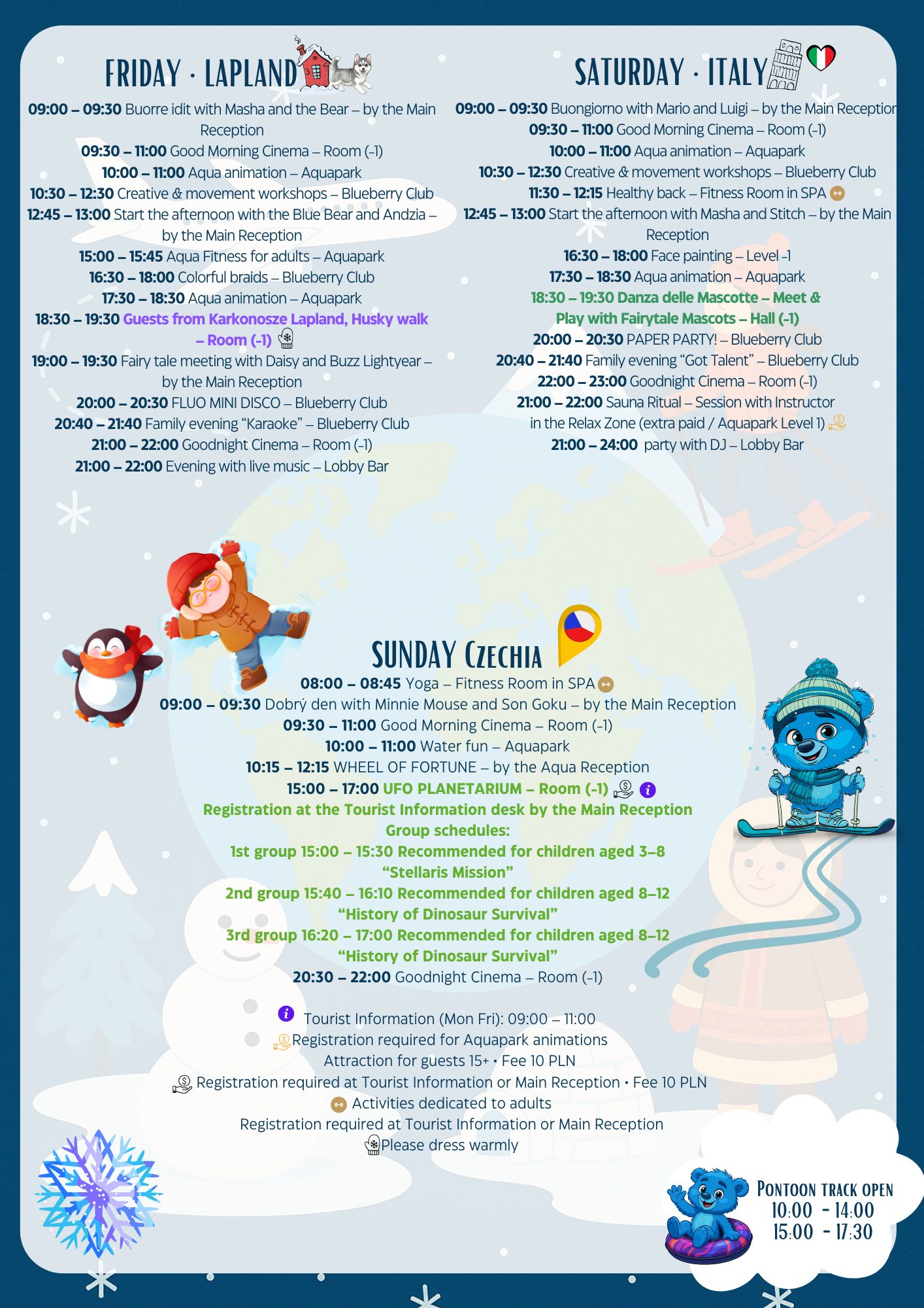 Wir behalten uns das Recht vor, den Animationsplan jederzeit zu ändern. Den aktuellsten Animationsplan erhalten Sie vor Ort im Resort.
