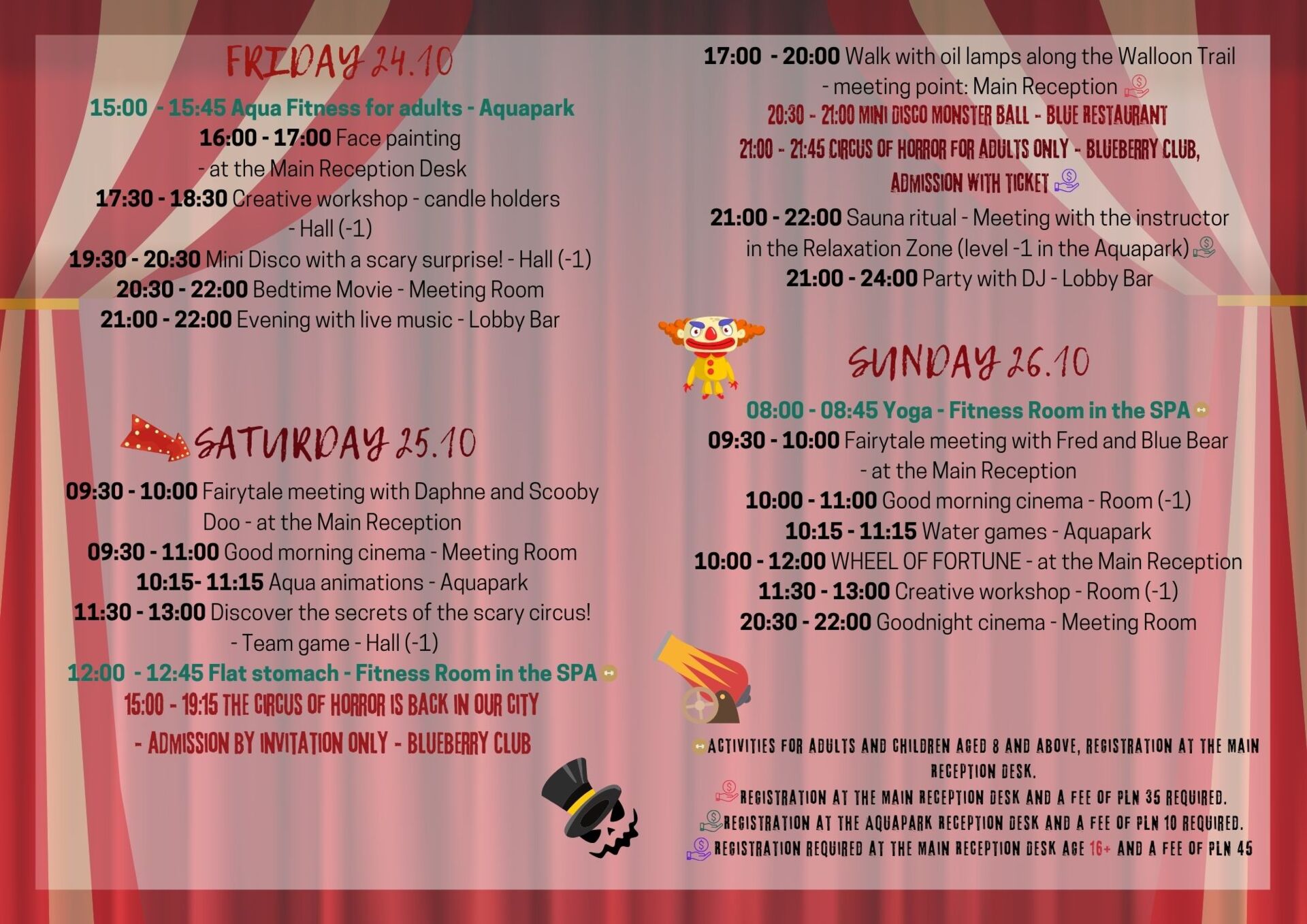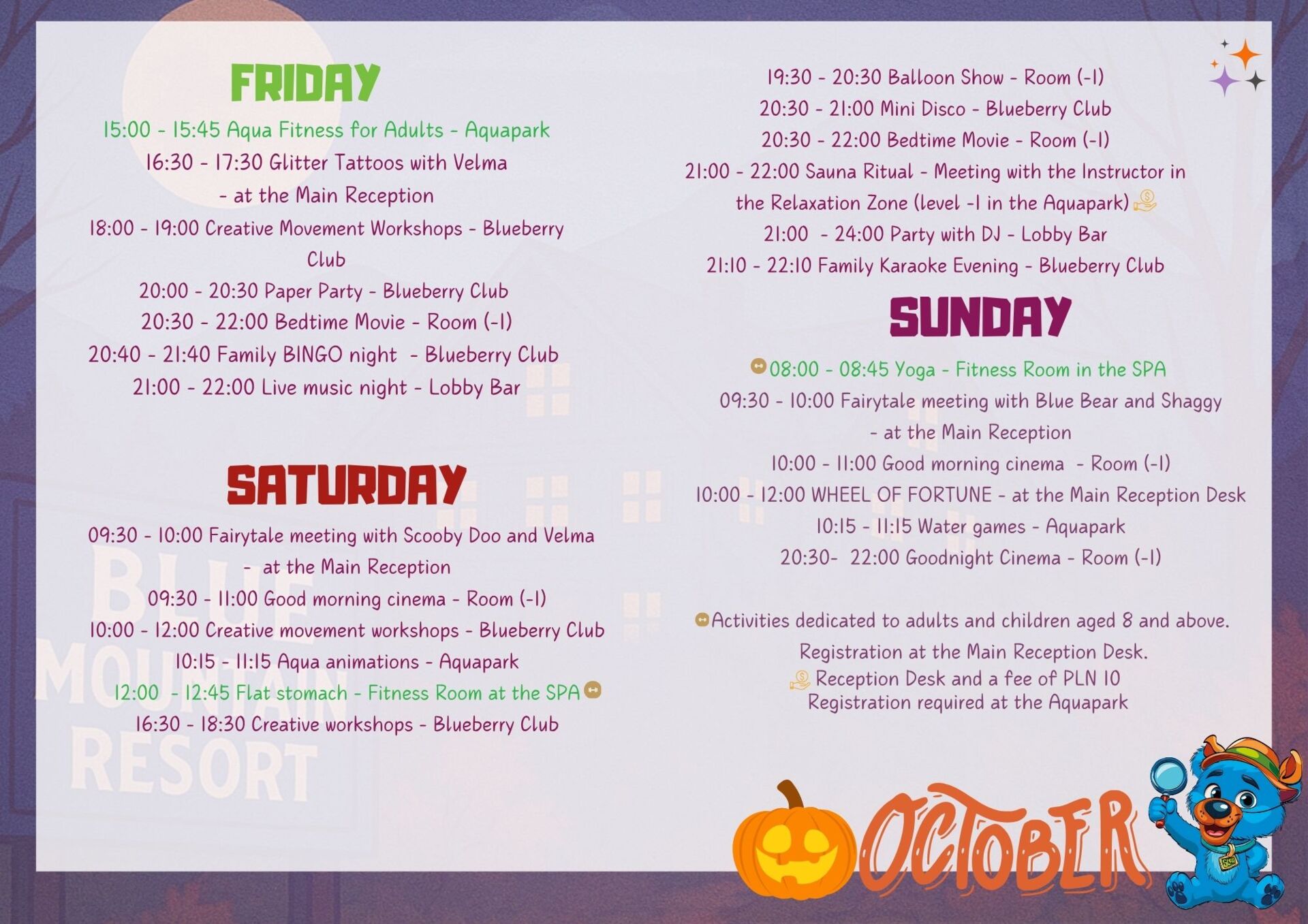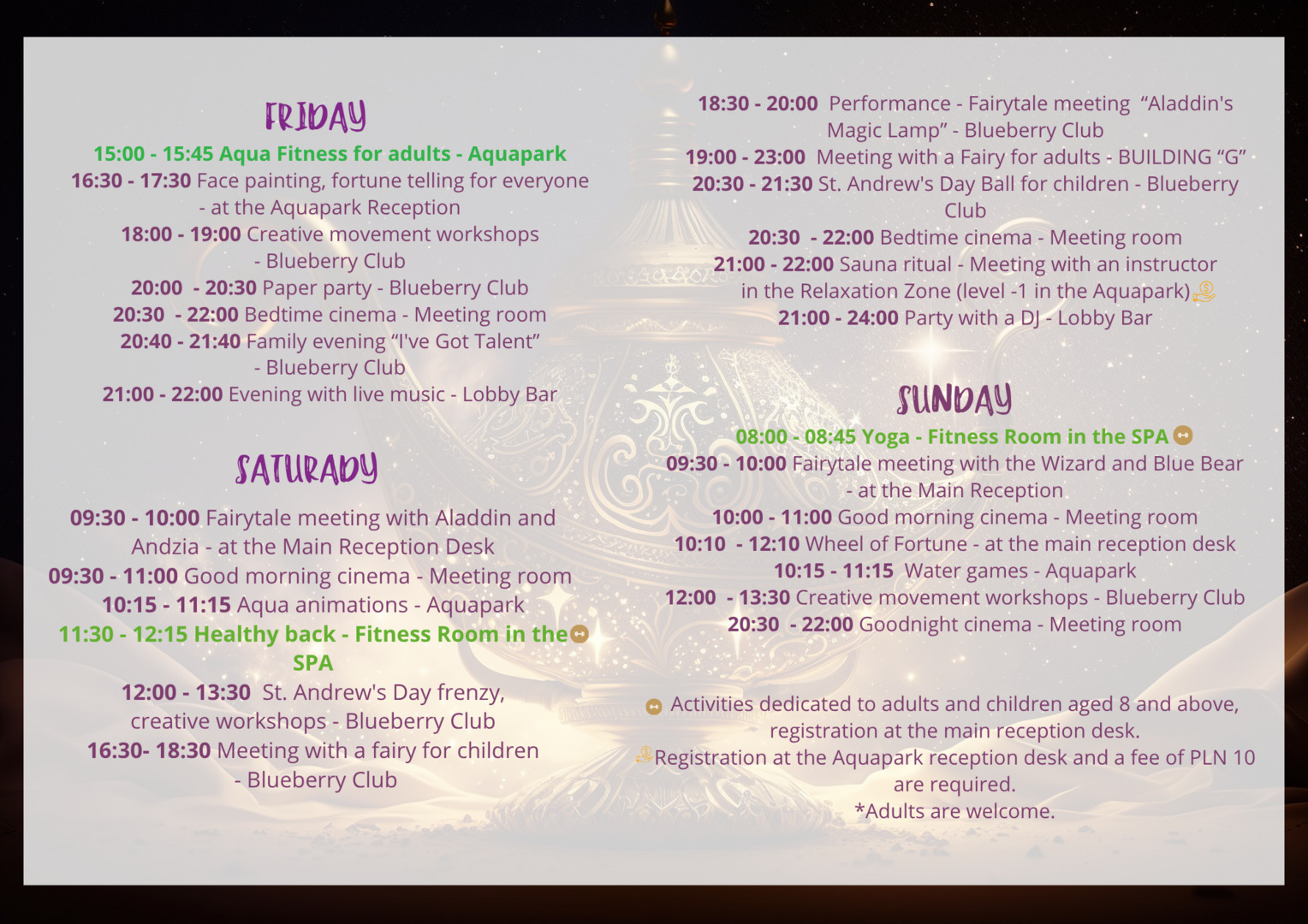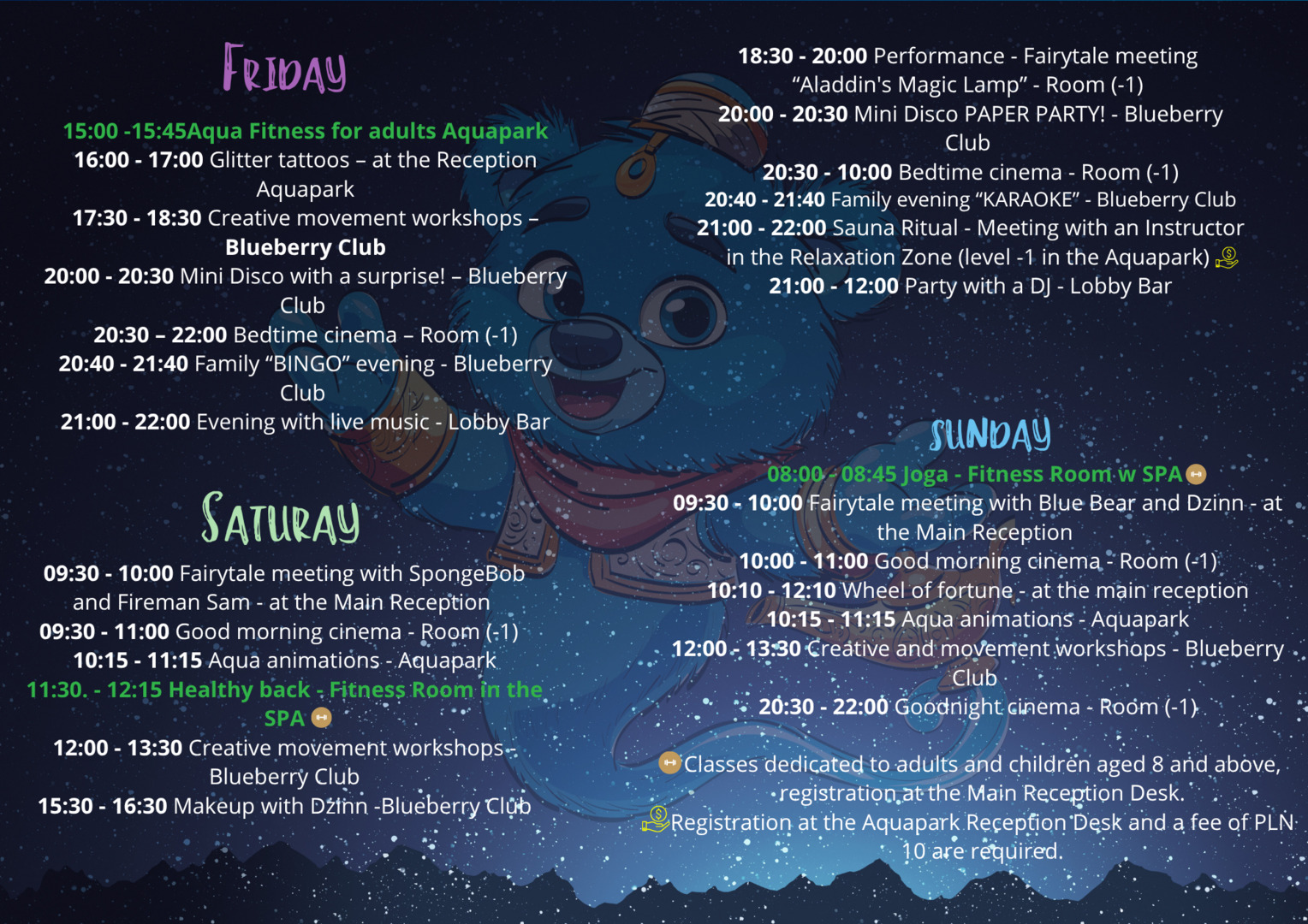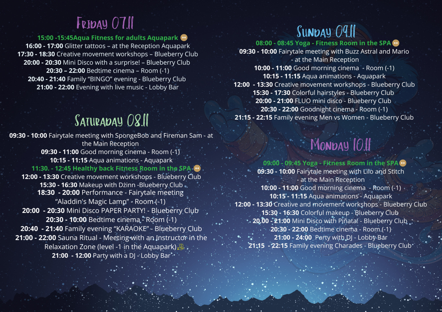We reserve the right to change the animation schedule at any time. You will receive the most up-to-date animation plan on site at the resort.
